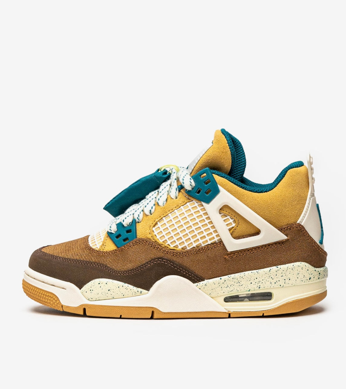 Air Jordan 4 Retro Cacao Wow — Ce modèle affirme une personnalité singulière, loin des codes habituels de la gamme. La Air Jordan 4 Retro Cacao Wow présente une tige aux nuances de marron et de beige, rehaussée par des accents de bleu turquoise. Elle est associée à une semelle intermédiaire blanc cassé et une semelle extérieure beige. Des finitions détaillées embellissent la silhouette, avec de subtiles touches de noir sur la semelle et des accents de turquoise sur les lacets. SKU : FB2214-200 Date de sortie : Septembre 2023 Couleur : Marron Cette édition se distingue par une construction pensée pour offrir un équilibre subtil entre style et technicité. Les choix de proportions, la structure générale et les détails visuels ont été travaillés pour renforcer l’identité propre à ce coloris. La conception met en avant une composition pensée pour durer sans perdre son caractère. Chaque élément du design s’articule autour d’une cohérence esthétique qui fait de cette paire une proposition unique au sein de la collection. Un modèle capable d’apporter une touche distinctive à n’importe quel fit, tout en restant agréable à porter au quotidien.
