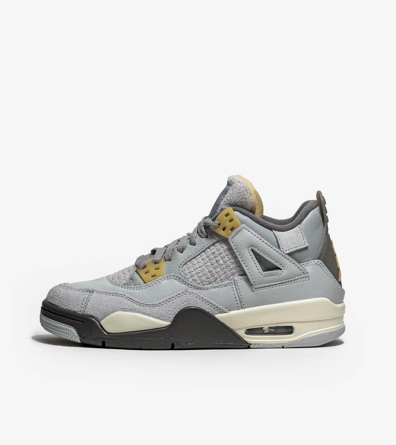 Air Jordan 4 SE Craft Photon Dust — Ce modèle affirme une personnalité singulière, loin des codes habituels de la gamme. La Air Jordan 4 SE Craft Photon Dust présente une empeigne en cuir gris avec des superpositions en suède de la même teinte. La cage en TPU habituelle est remplacée par du tissu, et les œillets en TPU ainsi que les brandings se démarquent par une teinte jaune pâle. L'ensemble est complété par une semelle intermédiaire gris foncé et crème. SKU : DV3742-021 / DV2262-021 Date de sortie : Février 2023 Couleur : Blanc/ Gris Cette édition se distingue par un travail minutieux sur les matériaux pour renforcer le caractère du modèle. Les choix de proportions, la structure générale et les détails visuels ont été travaillés pour renforcer l’identité propre à ce coloris. La conception met en avant un équilibre entre confort et esthétique assumée. Chaque élément du design s’articule autour d’une cohérence esthétique qui fait de cette paire une proposition unique au sein de la collection. Un modèle capable d’apporter une touche distinctive à n’importe quel fit, tout en restant agréable à porter au quotidien.