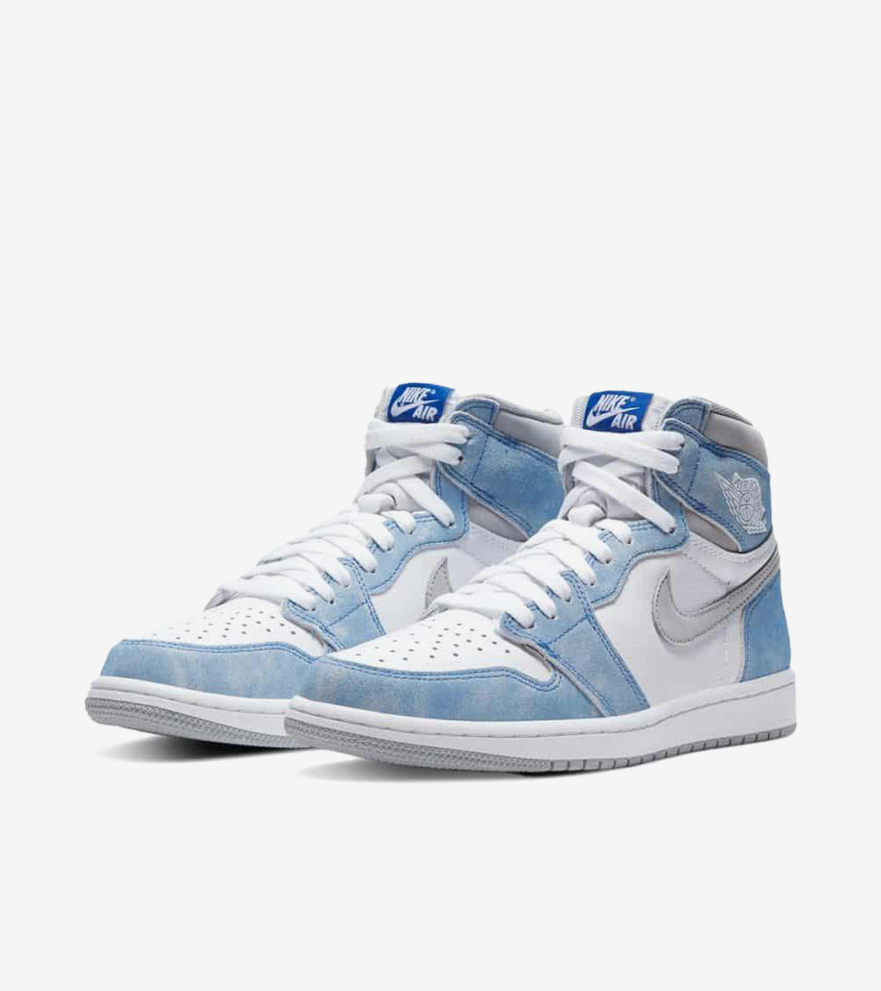 Jordan 1 Retro High Hyper Royal Smoke Grey — Cette version se démarque par une lecture totalement inédite de son design d’origine. La Air Jordan 1 Retro High OG Hyper Royal est conçue avec une base en cuir blanc accentuée par des empiècements en suède bleu qui confèrent tout son attrait à la paire. Des touches de gris sur les Swoosh et la cheville viennent s'ajouter à l'esthétique globale. Une semelle extérieure grise rappelle la couleur, tandis que la semelle intermédiaire blanche crée un contraste distinctif. SKU : 555088-402 Date de sortie : Avril 2021 Cette édition se distingue par une silhouette revisitée pour accentuer sa présence visuelle. Les choix de proportions, la structure générale et les détails visuels ont été travaillés pour renforcer l’identité propre à ce coloris. La conception met en avant un rendu visuel affirmé qui s'intègre parfaitement dans une rotation streetwear pointue. Chaque élément du design s’articule autour d’une cohérence esthétique qui fait de cette paire une proposition unique au sein de la collection. Un modèle capable d’apporter une touche distinctive à n’importe quel fit, tout en restant agréable à porter au quotidien.