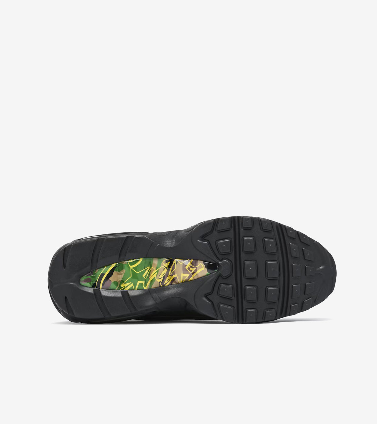 La Nike Air Max 95 SP Corteiz Gutta Green combine l’héritage running de la 95 — silhouette 2000s emblématique avec unité Air visible — à l’approche graphique et subversive de Corteiz. Sa tige en mesh léger kaki/vert olive (Sequoia/Gutta Green) apporte respirabilité et confort, tandis que les accents jaune “Tour Yellow” sur le Swoosh et les détails graphiques donnent un contraste percutant et reconnaissable.