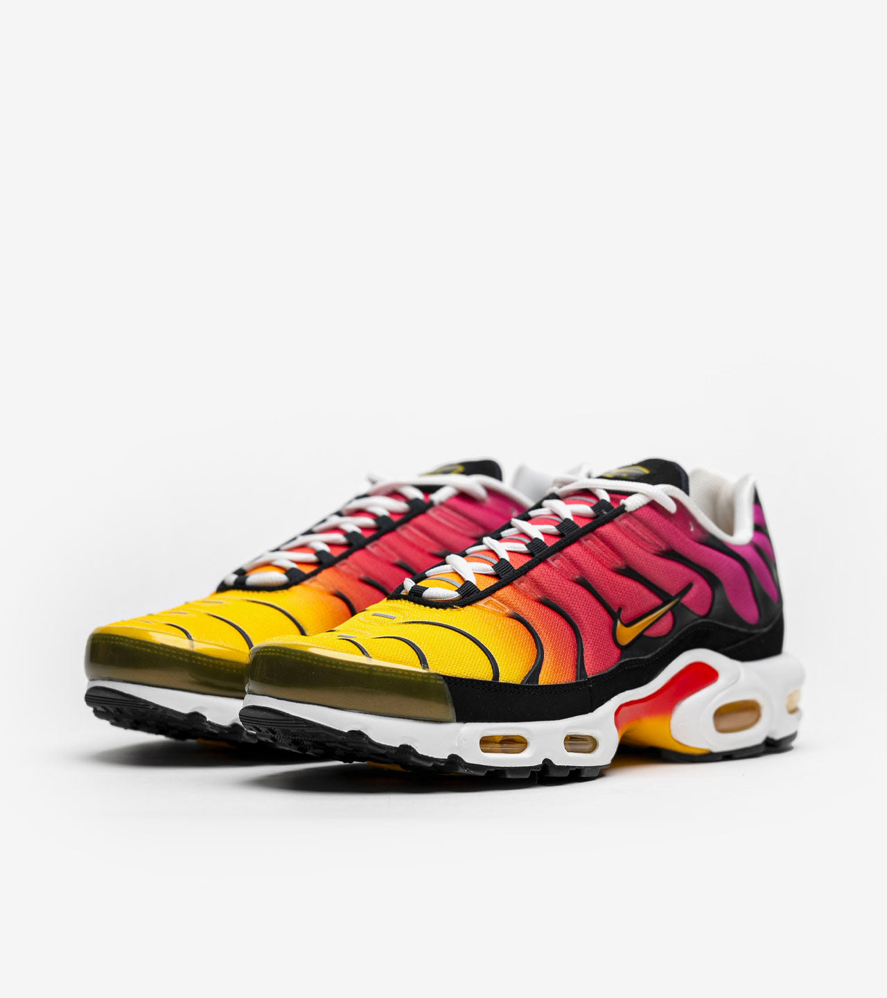 Nike Air Max Plus Yellow Pink Gradient — Cette déclinaison apporte une identité forte, conçue pour ceux qui recherchent une paire vraiment différente. Modèle emblématique conçu par Sean McDowell, la silhouette fait son retour avec la réédition de la version Rainbow, initialement lancée en 1999. La Nike Air Max Plus Yellow Pink Gradient se distingue par sa base en mesh audacieuse, présentant un dégradé du jaune au rose, agrémentée d'empiècements en TPU noir. Des touches orangées apparaissent également sur le mini Swoosh et la semelle, ajoutant du caractère à cette silhouette au look agressif. SKU : DX0755-600 Date de sortie : Mars 2023 Couleurs : Jaune, Rose Cette édition se distingue par une approche qui s’inspire des archives tout en s’éloignant volontairement des standards habituels. Les choix de proportions, la structure générale et les détails visuels ont été travaillés pour renforcer l’identité propre à ce coloris. La conception met en avant une allure distinctive qui gagne en personnalité avec le temps. Chaque élément du design s’articule autour d’une cohérence esthétique qui fait de cette paire une proposition unique au sein de la collection. Un modèle capable d’apporter une touche distinctive à n’importe quel fit, tout en restant agréable à porter au quotidien.