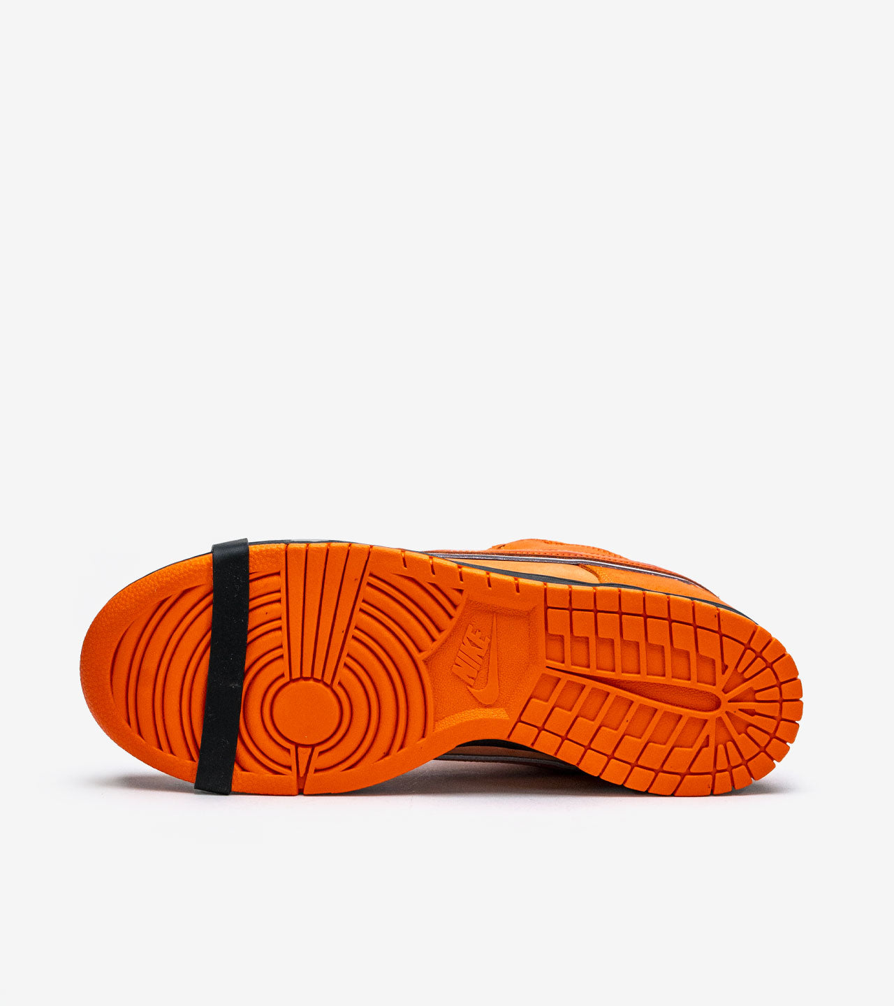 Nike SB Dunk Low Concepts Orange Lobster — Cette version se démarque par une lecture totalement inédite de son design d’origine. La Nike SB Dunk Low Concepts Orange Lobster présente une tige en suède déclinée dans diverses nuances d'orange. Des accents de blanc rehaussent la languette rembourrée, les lacets et encadrent le Swoosh sur le côté. Le col et la semelle intérieure Zoom Air sont revêtus d'une doublure inspirée des nappes de pique-nique. L'ensemble repose sur une semelle intermédiaire noire associée à une semelle extérieure orange. FD8776-800 Cette édition se distingue par une approche qui s’inspire des archives tout en s’éloignant volontairement des standards habituels. Les choix de proportions, la structure générale et les détails visuels ont été travaillés pour renforcer l’identité propre à ce coloris. La conception met en avant une composition pensée pour durer sans perdre son caractère. Chaque élément du design s’articule autour d’une cohérence esthétique qui fait de cette paire une proposition unique au sein de la collection. Un modèle capable d’apporter une touche distinctive à n’importe quel fit, tout en restant agréable à porter au quotidien.