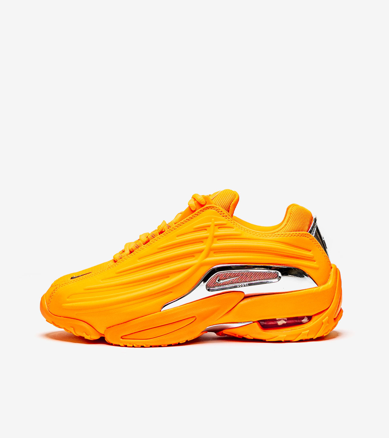 Nike Hot Step 2 NOCTA Total Orange — Impossible de confondre cette version : son esthétique raconte une histoire unique. Découvrez la Nike Hot Step 2 Drake NOCTA orange, une collaboration entre Nike et Drake inspirée des années 90. Avec son empeigne en polyuréthane orange et ses rayures en relief, cette chaussure se distingue par un design audacieux. Les accents argentés brillants, accompagnés du mini Swoosh et de l'inscription « NOCTA », ajoutent une touche unique. Le talon présente un empiècement argenté et une unité Air visible dans la semelle orange pour un confort optimal. Disponible depuis le 4 avril 2024, ce modèle allie style et exclusivité.