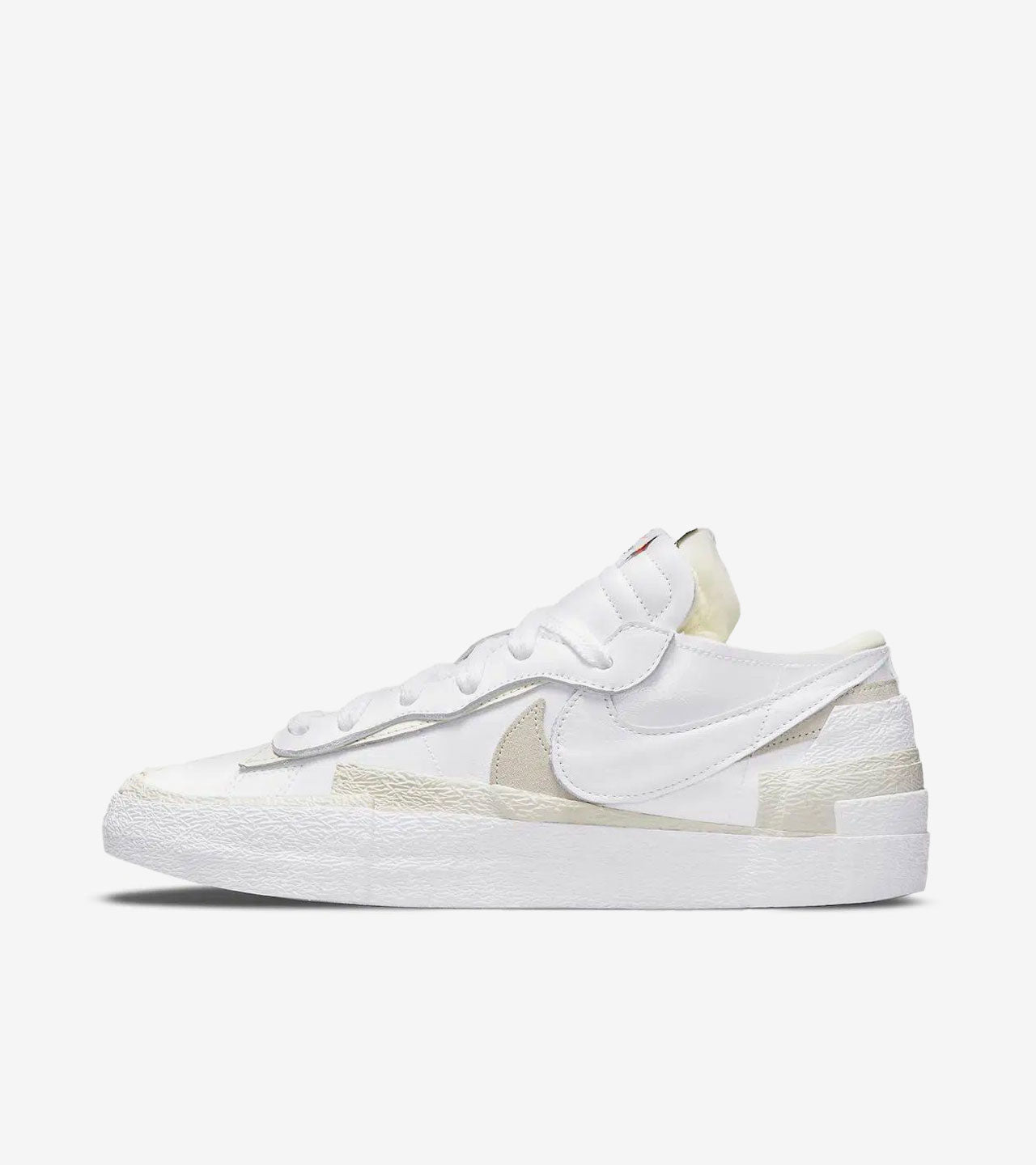 Entretien : Pour préserver votre Nike Blazer Low sacai White Patent Leather, utilisez une brosse adaptée pour les zones délicates et un chiffon légèrement humide pour les surfaces lisses. Séchage à l’air libre uniquement, sans chaleur directe. Aucun passage en machine.