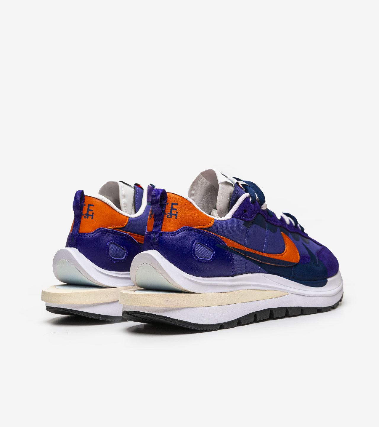 Nike Vaporwaffle Sacai Dark Iris — Impossible de confondre cette version : son esthétique raconte une histoire unique. La Nike Vaporwaffle Sacai Dark Iris offre une base en nylon de couleur violette, enrichie par des empiècements en daim adoptant une teinte légèrement plus sombre. Le swoosh latéral marron et le renfort arrière près du talon créent un contraste frappant avec l'ensemble de la chaussure. De plus, une semelle intermédiaire dédoublée vient ajouter une dimension supplémentaire à ce design. SKU : DD1875-500 Date de sortie : Mars 2021 Cette édition se distingue par un travail minutieux sur les matériaux pour renforcer le caractère du modèle. Les choix de proportions, la structure générale et les détails visuels ont été travaillés pour renforcer l’identité propre à ce coloris. La conception met en avant une allure distinctive qui gagne en personnalité avec le temps. Chaque élément du design s’articule autour d’une cohérence esthétique qui fait de cette paire une proposition unique au sein de la collection. Un modèle capable d’apporter une touche distinctive à n’importe quel fit, tout en restant agréable à porter au quotidien.