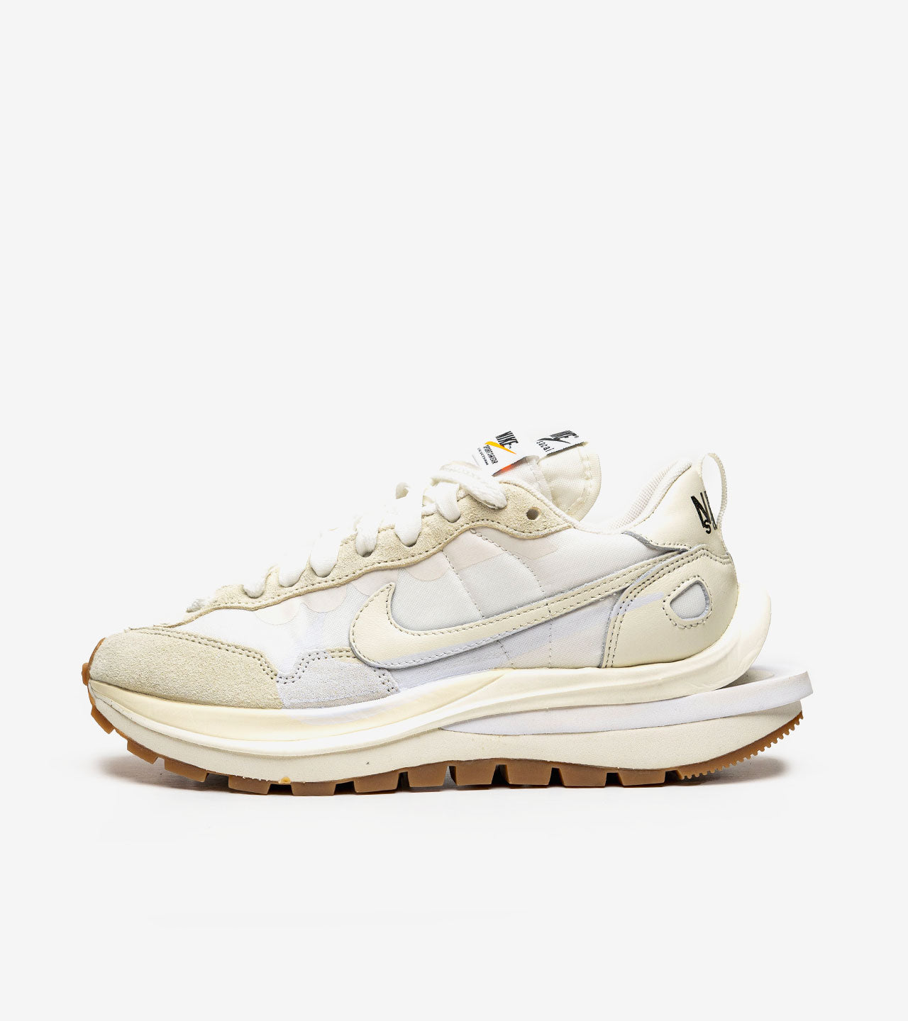 Nike Vaporwaffle Sacai Sail Gum — Cette déclinaison apporte une identité forte, conçue pour ceux qui recherchent une paire vraiment différente. La Nike Vaporwaffle Sacai Sail Gum présente un design qui suit la même approche que celle introduite en 2019. En jouant avec des superpositions de matériaux et des éléments dédoublés, elle conserve son attrait distinctif. Le dessus de la chaussure explore une palette de couleurs très proches les unes des autres, principalement du blanc et du blanc cassé. Cette combinaison confère une allure élégante et raffinée à cette version particulière. SKU : DD1875-100 Date de sortie : Décembre 2021 Cette édition se distingue par une approche qui s’inspire des archives tout en s’éloignant volontairement des standards habituels. Les choix de proportions, la structure générale et les détails visuels ont été travaillés pour renforcer l’identité propre à ce coloris. La conception met en avant une proposition forte, idéale pour les amateurs de paires au design structuré. Chaque élément du design s’articule autour d’une cohérence esthétique qui fait de cette paire une proposition unique au sein de la collection. Un modèle capable d’apporter une touche distinctive à n’importe quel fit, tout en restant agréable à porter au quotidien.