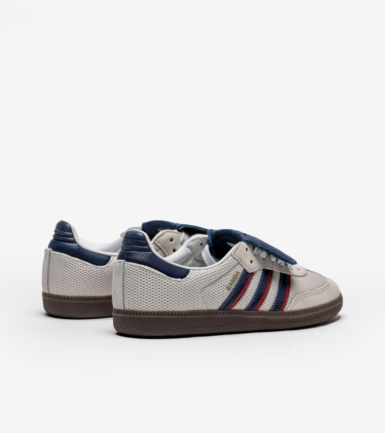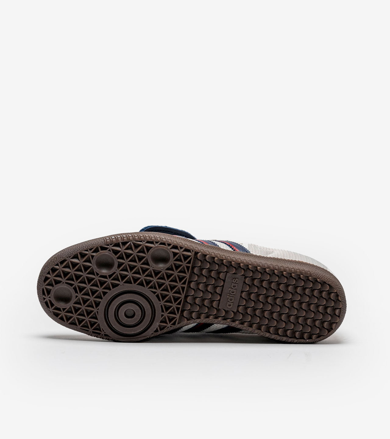 Entretien : Pour préserver votre adidas Samba LT Crystal White Dark Blue, utilisez une brosse adaptée pour les zones délicates et un chiffon légèrement humide pour les surfaces lisses. Séchage à l’air libre uniquement, sans chaleur directe. Aucun passage en machine.