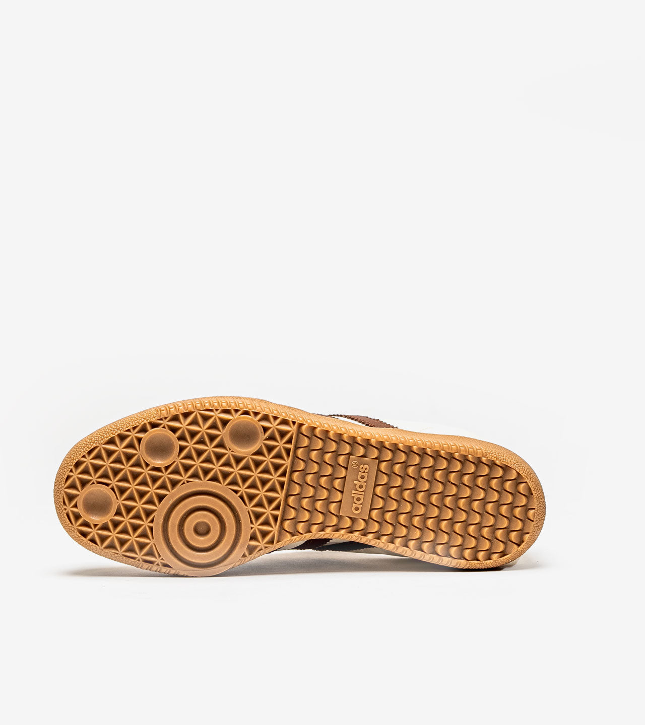 Entretien : Pour préserver votre Samba OG 'Cream White Preloved Brown', utilisez une brosse adaptée pour les zones délicates et un chiffon légèrement humide pour les surfaces lisses. Séchage à l’air libre uniquement, sans chaleur directe. Aucun passage en machine.