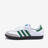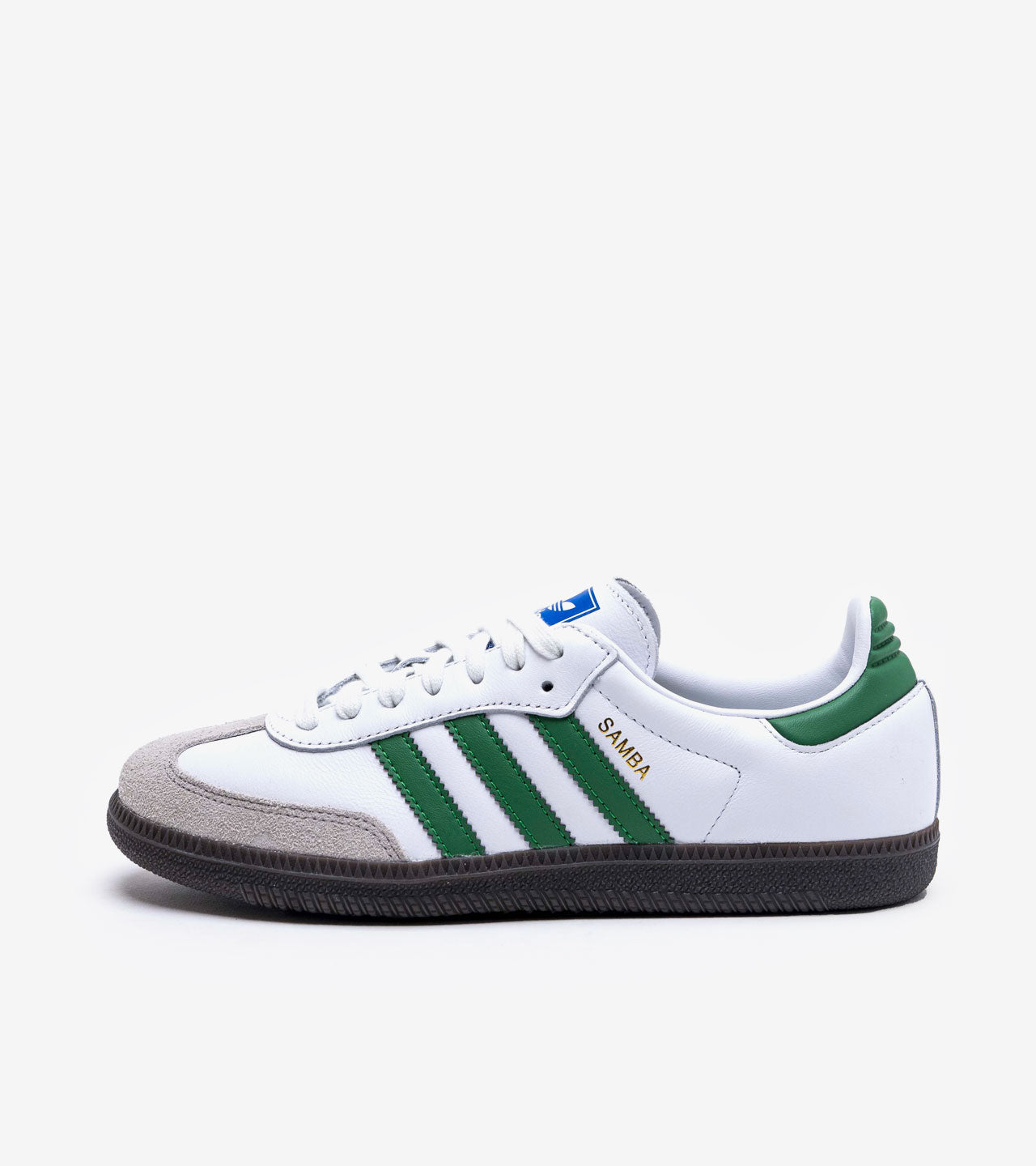 Adidas Samba OG White Green — Cette interprétation propose une approche nouvelle, nourrie par l’héritage mais résolument moderne. La Adidas Samba OG White Green affiche une base en cuir pleine fleur blanc, accompagnée d'un mudguard en suède beige. Des détails dorés comme le "Samba" sur le panneau latéral subliment l'empeigne, tout comme les trois bandes en cuir vert, accordées au heeltab. Pour conclure le tout, une gumsole prend place sous cette paire. SKU : IG1024 Date de sortie : Mai 2023 Cette édition se distingue par une approche qui s’inspire des archives tout en s’éloignant volontairement des standards habituels. Les choix de proportions, la structure générale et les détails visuels ont été travaillés pour renforcer l’identité propre à ce coloris. La conception met en avant une allure distinctive qui gagne en personnalité avec le temps. Chaque élément du design s’articule autour d’une cohérence esthétique qui fait de cette paire une proposition unique au sein de la collection. Un modèle capable d’apporter une touche distinctive à n’importe quel fit, tout en restant agréable à porter au quotidien.