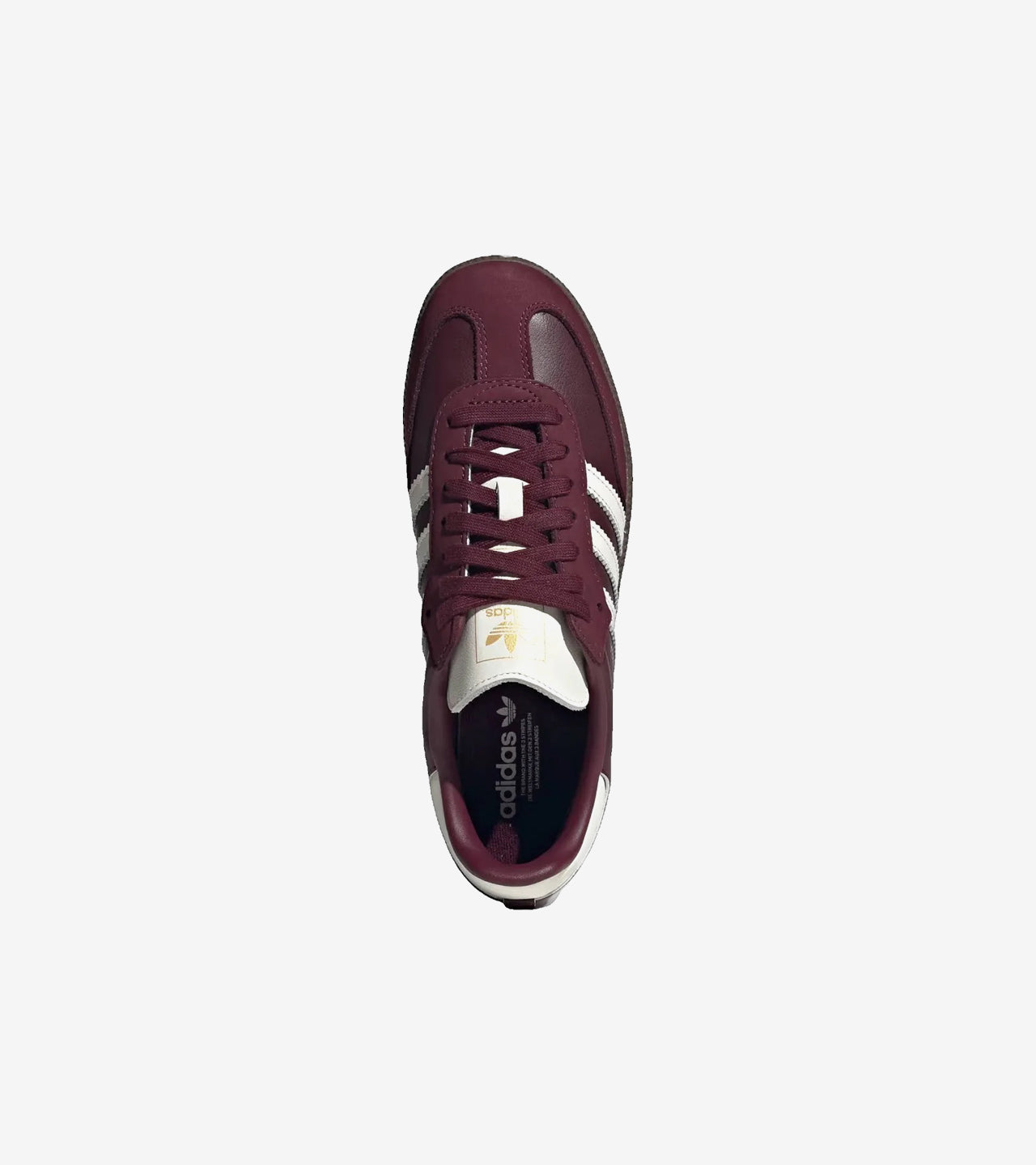 L’adidas Samba OG Maroon White Gum (version femme) revisite l’une des sneakers les plus emblématiques d’adidas avec un coloris raffiné : tige bordeaux (maroon), touches blanches et semelle gum classique — un équilibre entre héritage rétro, élégance discrète et polyvalence urbaine. Ce modèle incarne l’esprit vintage sport-lifestyle tout en restant parfaitement adapté à un usage quotidien : facile à associer avec un jean, un pantalon cargo ou une tenue casual chic.