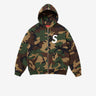 COLLEGIATE APPLIQUÉ ZIP UP HOODED SWEATSHIRT WOODLAND CAMO