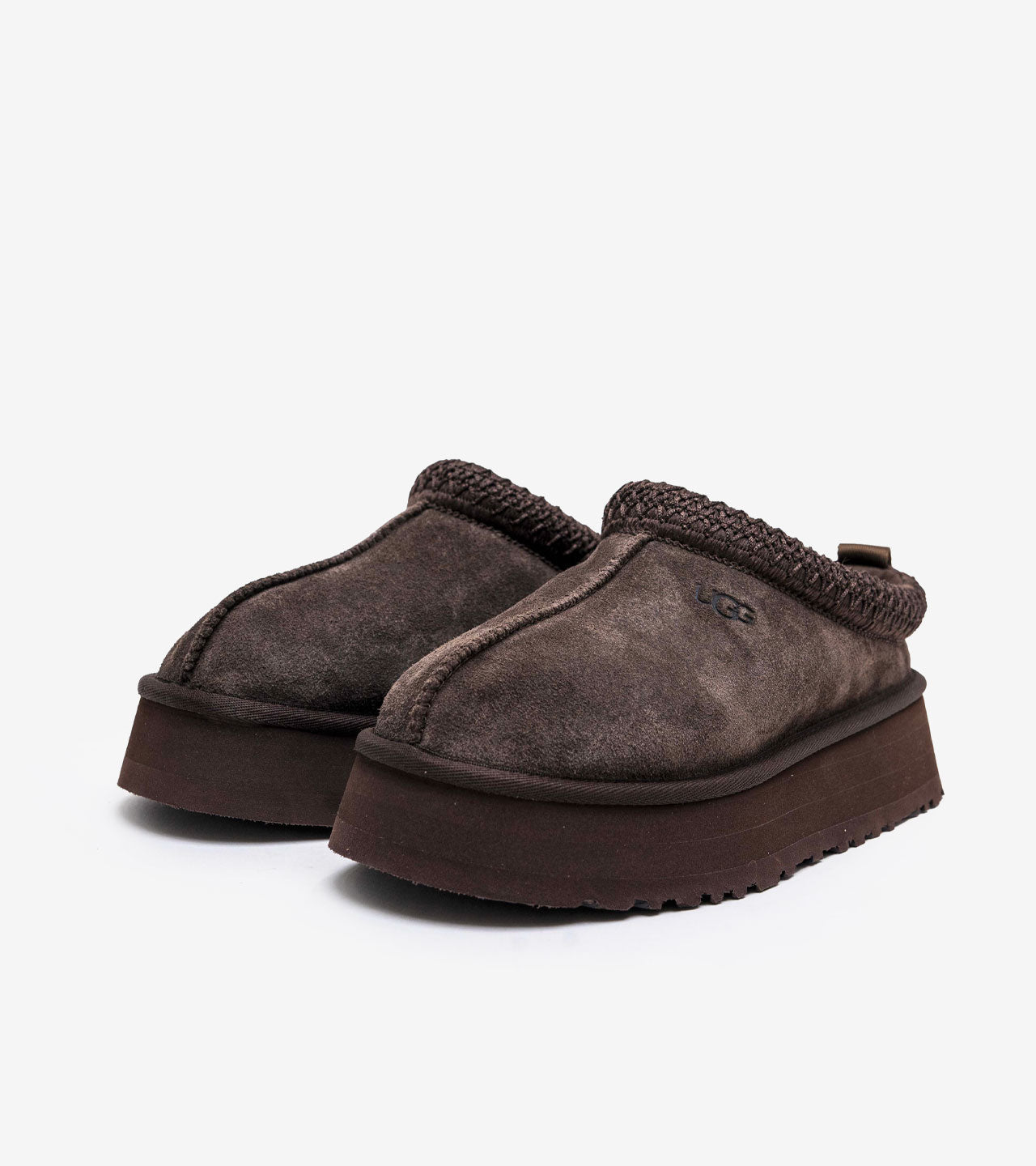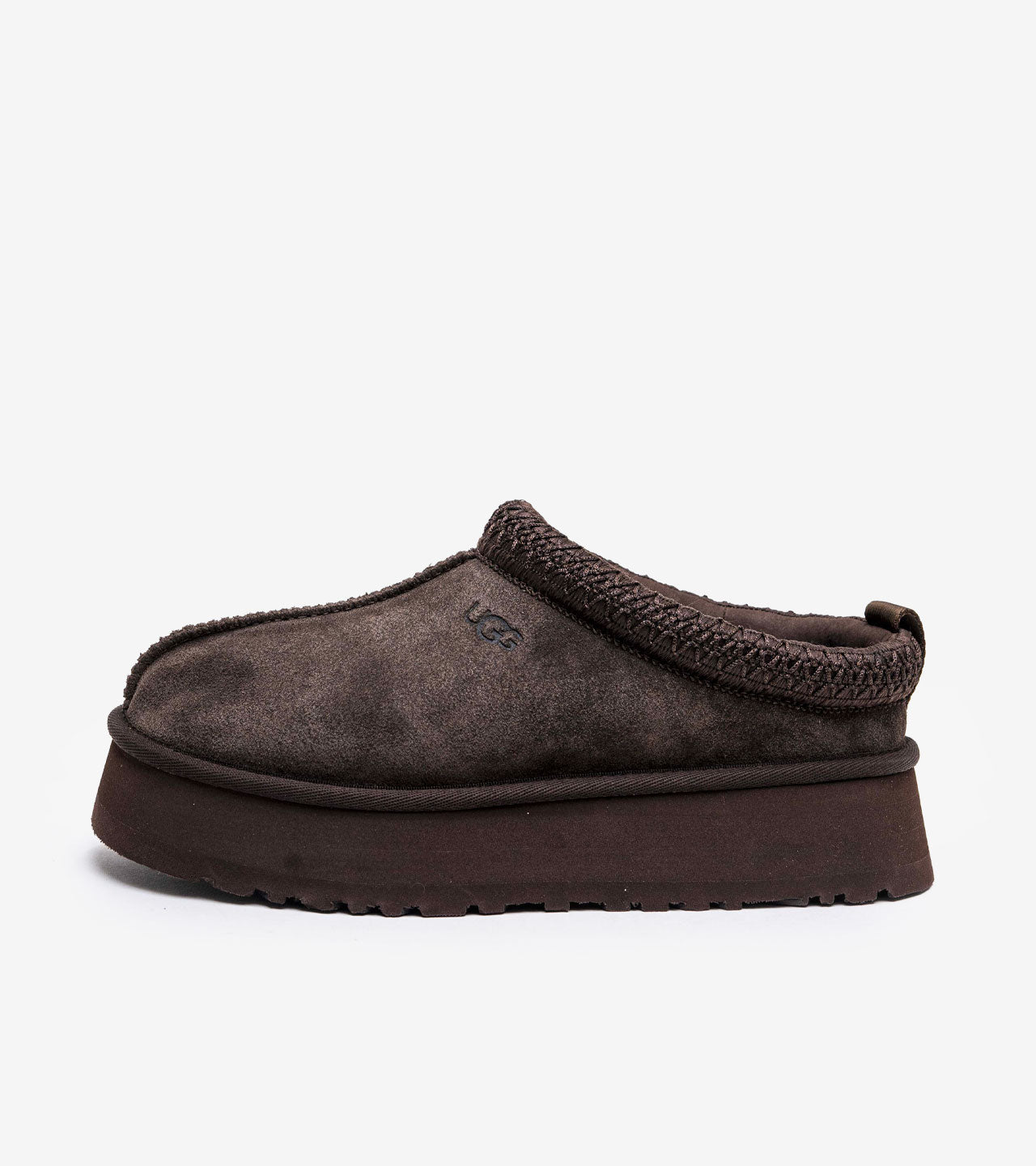 UGG Tazz Slipper Chocolate — Cette déclinaison apporte une identité forte, conçue pour ceux qui recherchent une paire vraiment différente. UGG présente une déclinaison de sa célèbre silhouette Tasman dans une version surélevée baptisée la Tazz, ici dans un coloris monochrome. La UGG Tazz Slipper Chocolate propose une tige en daim marron foncé, agrémentée d'une tresse en polyester recyclé assortie. Sa doublure est conçue en UGGPLUSH, une laine recyclée associée à de la peau de mouton, tandis qu'une semelle compensée de 3,8 cm en EVA assure un maintien optimal. Avec son allure de mule, ce modèle vous permet de marier élégance et confort tout en restant bien au chaud, même par temps froid. SKU : 1122553-CHO Date de sortie : Septembre 2023 Cette édition se distingue par une silhouette revisitée pour accentuer sa présence visuelle. Les choix de proportions, la structure générale et les détails visuels ont été travaillés pour renforcer l’identité propre à ce coloris. La conception met en avant une proposition forte, idéale pour les amateurs de paires au design structuré. Chaque élément du design s’articule autour d’une cohérence esthétique qui fait de cette paire une proposition unique au sein de la collection. Un modèle capable d’apporter une touche distinctive à n’importe quel fit, tout en restant agréable à porter au quotidien.