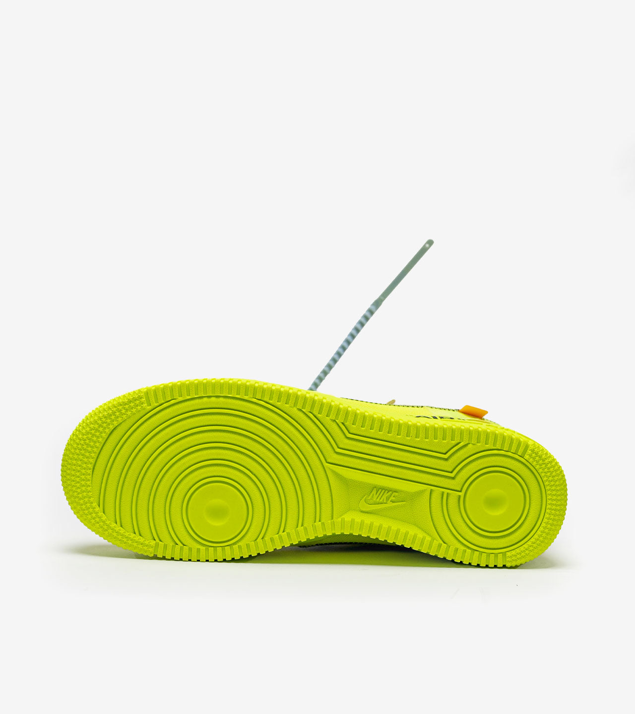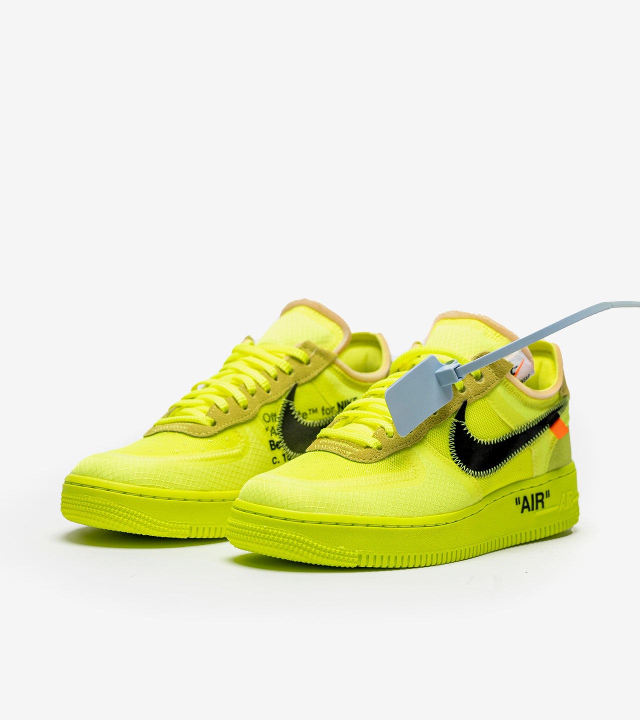 Entretien : Pour préserver votre Nike Air Force 1 Low Off-White Volt, utilisez une brosse adaptée pour les zones délicates et un chiffon légèrement humide pour les surfaces lisses. Séchage à l’air libre uniquement, sans chaleur directe. Aucun passage en machine.