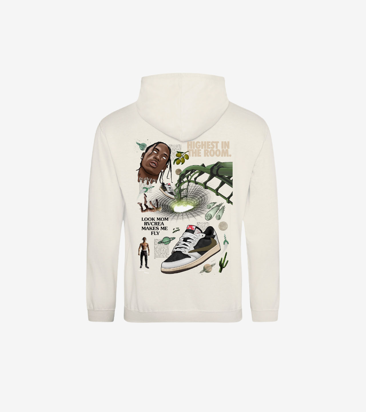 Sweat-shirt à capuche Encore X Rvcrea en coton-polyester premium (80/20). Coupe confortable avec impression numérique du "Tableau Rvcrea Fragment" au dos et petit logo brodé côté cœur. Tissu robuste 280g/m² en coloris vanille intemporel. Entretien délicat : lavage 30°, séchage à l'air libre, pas de repassage sur l'imprimé. Pièce essentielle pour les amateurs de streetwear raffiné.