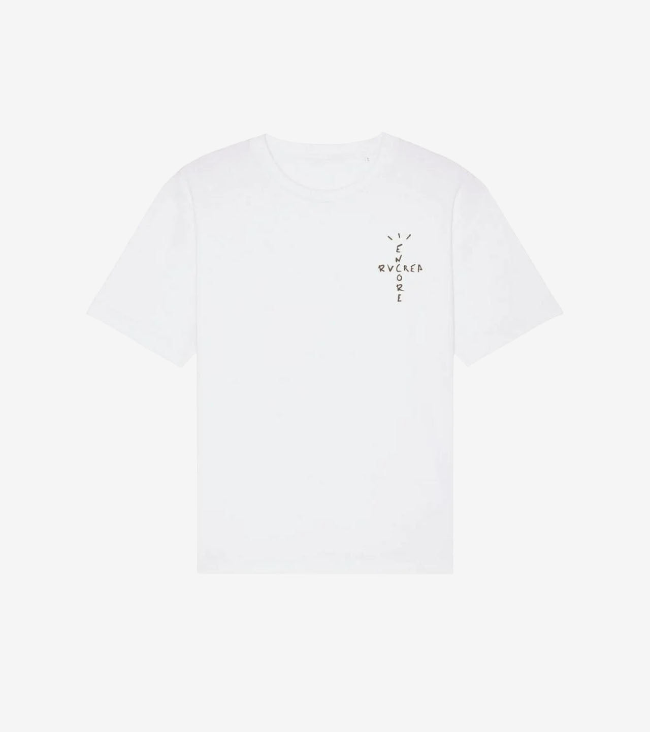 T-shirt manches courtes en 100% coton premium (195g/m²) dans un blanc pur. Orné d'une impression numérique "Tableau Rvcrea Dark Mocha" au dos et d'un discret logo Encore X Rvcrea au cœur. Coupe intemporelle, confort quotidien. Entretien facile : lavage 30°, sans sèche-linge ni repassage sur l'impression.